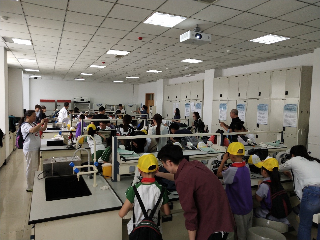 2018年5月26日,由中国生物化学与分子生物学会和吉林省生物化学与分子生物学会联合主办的2018年实验室开放月“生物实验体验和生命科学知识小课堂”活动,在吉林大学生物国家级实验教学示范中心和化学·生命科学专业国家级实验教学示范中心举行。依托中心的资源条件,在中国生物化学与分子生物学会大力支持下,此次活动顺利举办并取得了良好的科普效果。来自吉林省长春市吉林大学附属小学和西安大路小学的共计102名小学生及部分家长参加了此次科普活动,内容主要包括有:显微镜观察单细胞生物、植物细胞、真菌,动物实验观摩,生命科学知识小课堂等。让小学生及家长充分深入生物学实验室,感受生物学科的魅力。学生们全面学习掌握了显微镜操作方法,看到了丰富奇妙的微观世界,观察了实验小鼠的运动行为,最后结束时还填写了人生第一份实验记录,给学生们留下了深刻的记忆,有助于丰富小学生的课外科研活动,激发小学生对生物学科的学习兴趣。