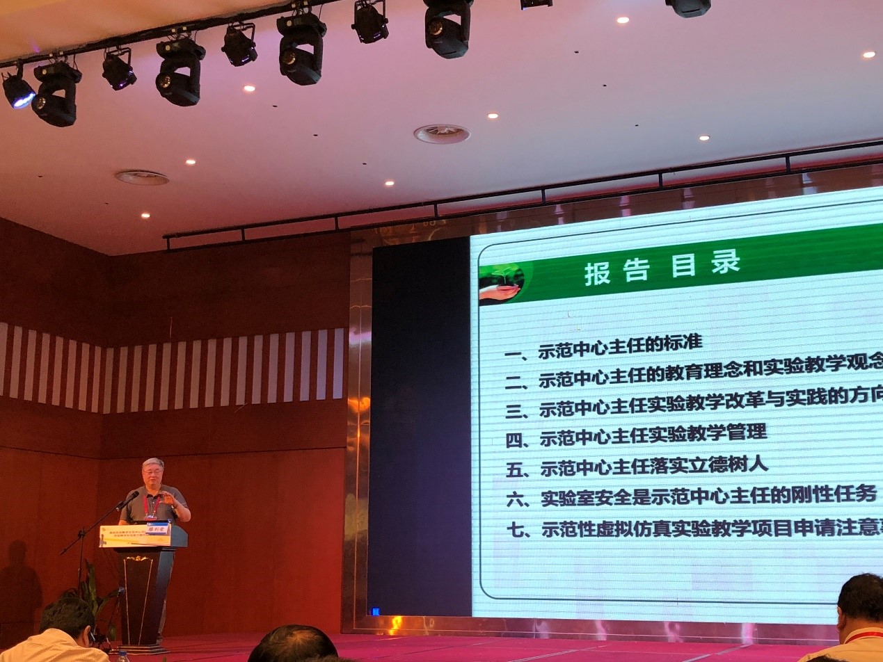 中心主任滕利荣应邀做了题为“如何做好新时代的示范中心主任工作”的报告。他从高校实验教学示范中心教育理念、实验教学观念、实验教学改革与实践方向、实验教学管理等方面阐述了新时期应如何做好示范中心主任、如何将立德树人、实验室安全落实到实践教学过程中去等,并同参会代表分享了工作经验。报告在参会代表中引起强烈反响,得到参会专家们的高度评价。