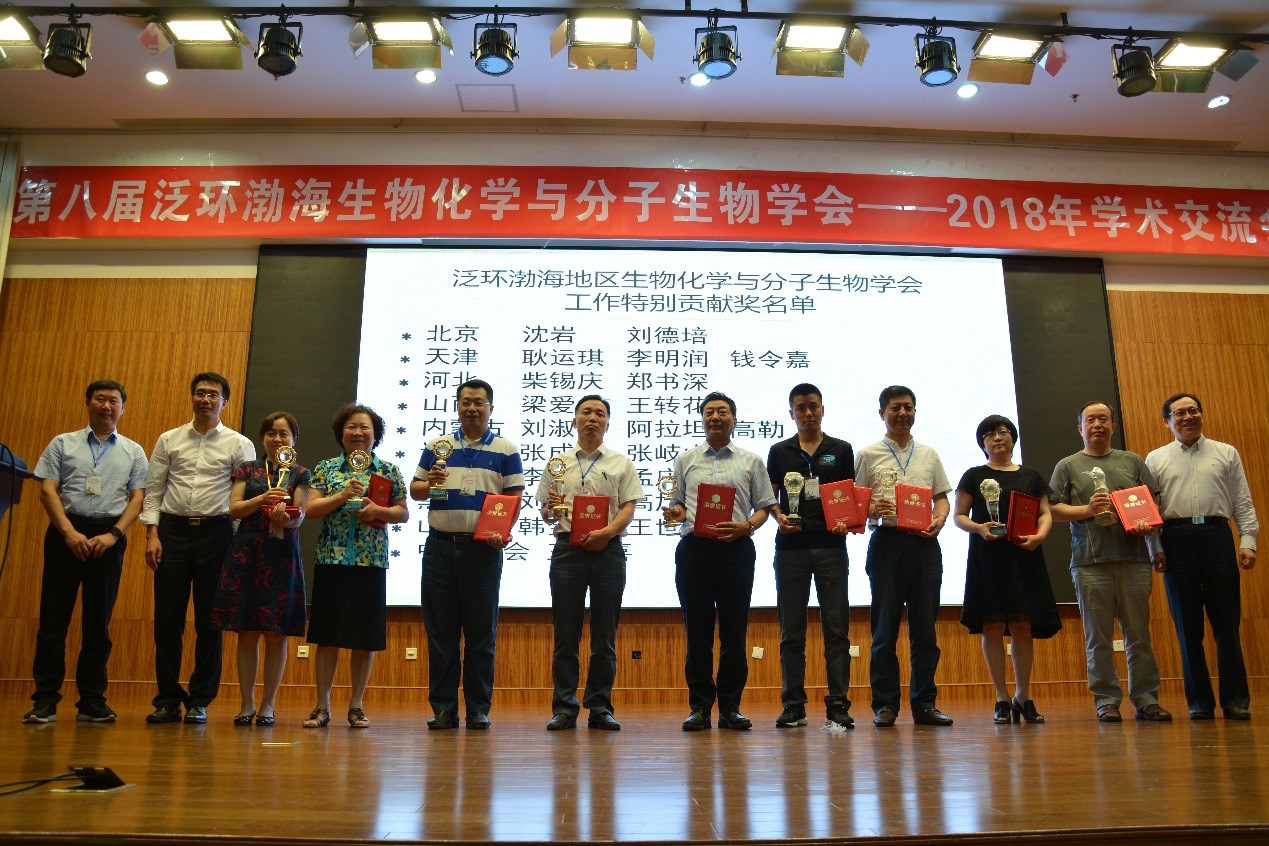 2018年6月29日到7月1日“第八届泛环渤海生物化学与分子生物学会——2018年学术交流会”在天津隆重召开,有来自七省二市的140多位生物化学与分子生物学教学、科研、生产工作者参加会议。经泛环渤海生物化学与分子生物学会理事长与秘书长联席会决议,评选泛环渤海生物化学与分子生物学会工作特别贡献奖。我中心副主任、吉林省生化学会副理事长、秘书长孟庆繁研究员荣获泛环渤海生物化学与分子生物学会工作特别贡献奖,以兹表彰其在生物化学与分子生物学会工作中的卓越贡献。会议征集了近百篇论文摘要,经专家审议,评选出优秀论文奖10项,我中心曲一笛、王文琪等同学撰写的论文《小牛血去蛋白提取物注射液通过氧化应激介导的线粒体凋亡通路对阿尔兹海默症药理作用的研究》获得优秀论文奖,为吉林省生物化学与分子生物学会争得荣誉。