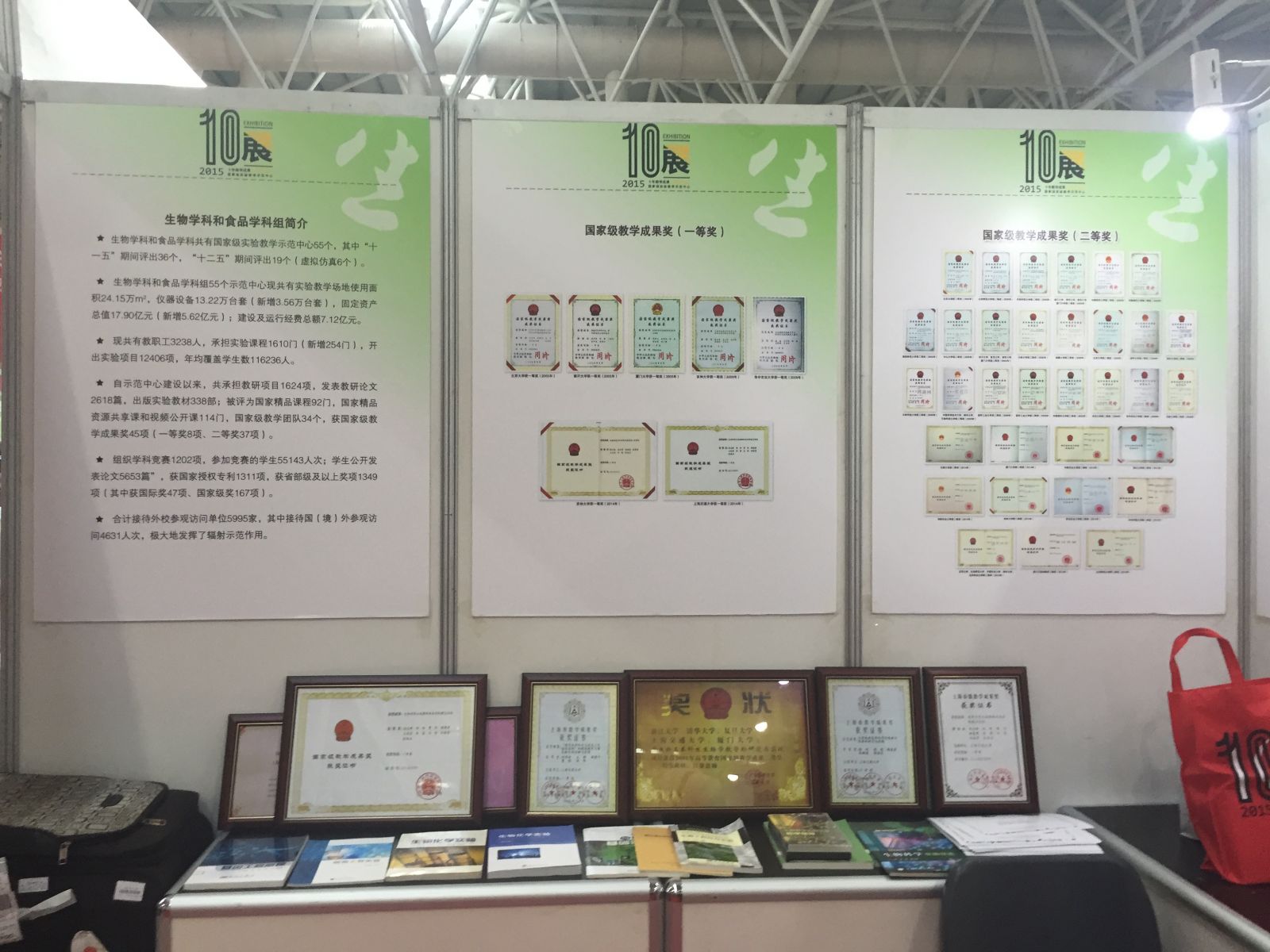 2015年9月23~25日,国家级实验教学示范中心联席会受教育部高教司的委托,在福州召开了“国家级实验教学示范中心十年建设成果展示交流会”。中心作为国家级实验教学示范中心联席会生物与食品学科组组长单位(滕利荣教授为组长),经过前期展板设计、视频汇编、交流材料整理、实物成果汇集及展位布展等工作,顺利完成示范中心十周年成果展示准备工作。
