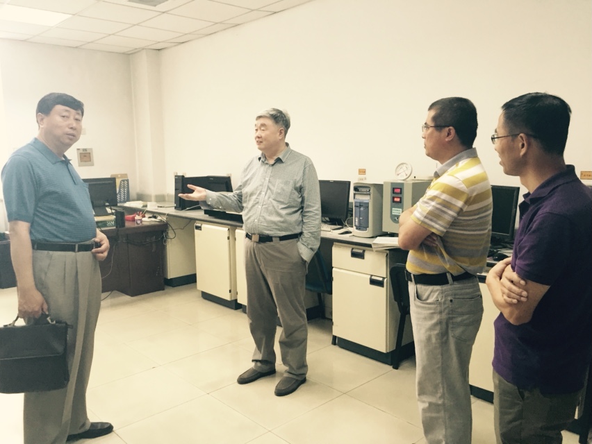 2015年6月24日,吉林省林业科学研究院院长山广茂一行2人来生物分中心参观调研。中心主任滕利荣教授、生命科学学院副院长兼中心常务副主任孟庆繁研究员接待了考察团。考察团先后参观考察了中心的档案室、信息化管理室、普通生物学基础实验室、现代生物学基础实验室、专业实验室、学生创新实验室及校内实训基地。山广茂院长对中心的团队建设、实验室开放与共享、科学管理、产学研结合和学生创新实验等方面给予了充分肯定和高度评价。
