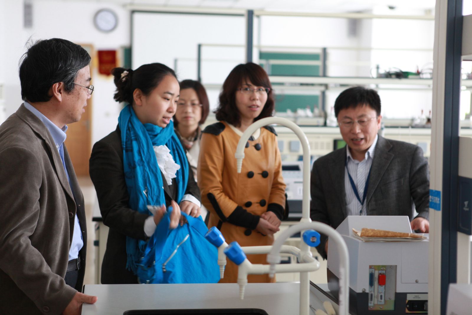 代表团首先听取了滕利荣主任关于实验中心建设管理经验的报告。随后代表团在孟庆繁副主任的带领下先后参观考察了中心的档案室、信息化管理室、基础实验室、学生创新实验室及校内实训基地等。参观完实验室,代表们对中心的建设理念和管理思路产生浓厚兴趣,与中心老师们举行了座谈会。座谈会上,双方就实验教学感兴趣的相关问题进行了探讨和交流。代表们对中心的先进的建设管理模式给与了高度评价和充分肯定,一致认为此行受益匪浅。他们临别时为中心留言:吉林大学国家级实验教学中心,为综合性大学研究型大学本科生培养建立了一个一流的培养平台,一套先进的管理模式,是全国高校学习的典范!