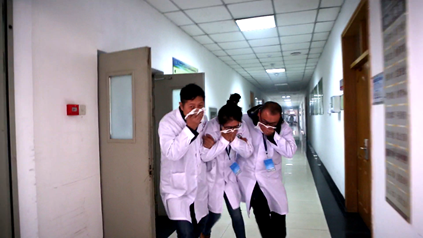 消防演习于上午10点10分伴随着报警器的“突然”响起和实验楼滚滚浓烟正式开始。实验室工作的本科生、研究生和教师,立刻放下手中工作,在相关安全负责人的指挥下,迅速关闭电源,拿出毛巾、口罩沾水唔上口鼻,有序的撤离实验室,并沿消防指示灯指示方向迅速下楼、在就近防火门通道到达安全地带。随后各班班长、各楼层负责人清点人数,并层层汇报。在发现有被困人员时,总指挥派人前去救助,并安全救出。