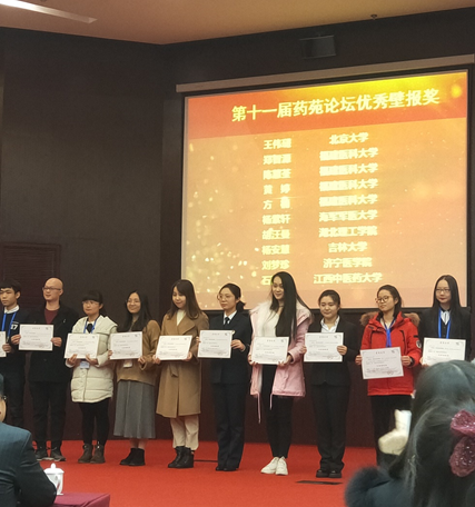 “全国大学生药苑论坛”是由教育部高等学校药学类专业教学指导委员会和中国药学会药学教育专业委员会主办的公益性质活动。本届赛事有来自全国百余所高校大学生参加,设置优秀壁报奖(20项)、优秀论文奖(参赛项目的20%)、创新成果奖(一、二等奖数不超过50%)。优秀壁报奖是由所有参加壁报交流的项目代表和承办院校在校生代表现场投票产生;优秀论文奖是按照“学生原创性、研究规范性、成果创新性”的原则由论坛评委专家组评分产生;创新成果奖的评选由论文得分和现场汇报答辩产生。中心副主任王迪教授指导的学生杨安慧等参赛作品《Ameliorative Effects of Antrodia cinnamomea Polysaccharides Against Cyclophosphamide-Induced Immunosuppression Related to Nrf2/HO-1 Signaling in BALB/c Mice.》获得创新成果奖一等奖、优秀论文奖、优秀壁报奖各1项,王佳琪等同学的参赛作品《Pharmacological Basis for the Use of Evodiamine in Alzheimer's Disease: Antioxidation and Antiapoptosis》获得创新成果奖一等奖、优秀论文奖各1项。