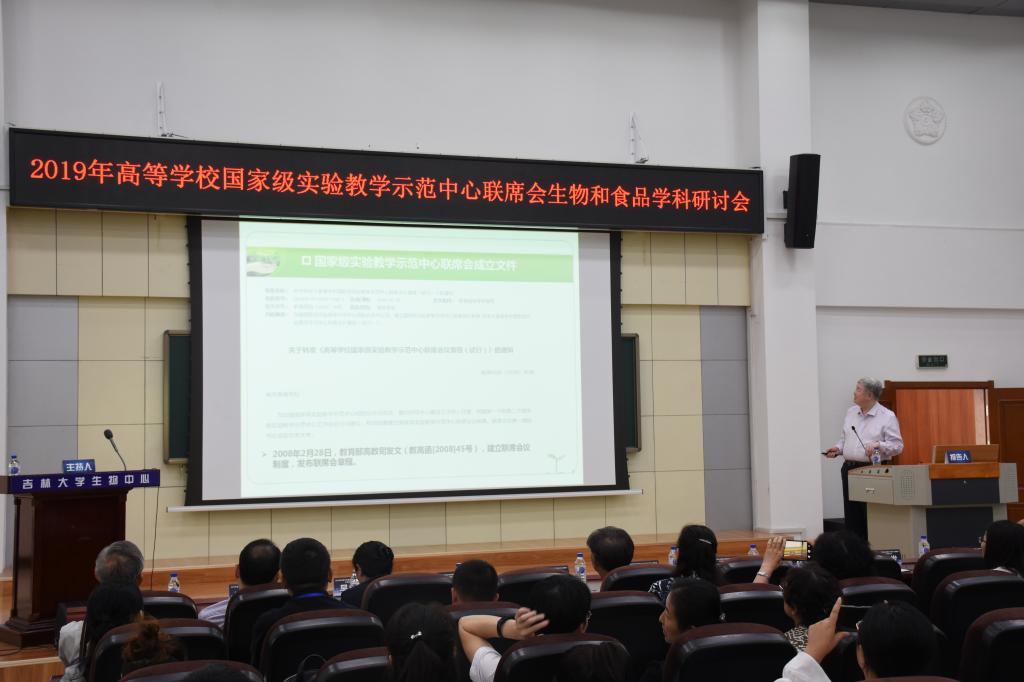 2019年7月17日-19日,由高等学校国家级实验教学示范中心生物和食品学科组,教育部高等学校生物技术、生物工程类专业教学指导委员会,教育部高等学校食品科学与工程专业教学指导委员会,高等教育出版社联合举办的“2019年高等学校国家级实验教学示范中心生物和食品学科研讨会”在吉林大学举行。来自全国82所高校241位各级实验示范中心主任、副主任及一线教师,高校教学管理和实验教学相关专家和教师代表参会。高等学校国家级实验教学示范中心联席会原秘书长、北京大学王兴邦教授,江苏师范大学副校长郑元林教授,浙江万里学院副校长钱国英教授,吉林大学党委副书记、副校长王利锋教授,教育部高等学校生物科学类专业教学委员会副主任委员,四川大学生命科学学院书记兼生物科学实验教学中心主任林宏辉教授,教育部高等学校生物技术、生物工程类专业教学指导委员会秘书长、上海交通大学陈峰教授,全国生物工程领域专业学位研究生培养协作组组长、上海交通大学张雪洪教授等出席开幕式,开幕式由吉林大学大学教务处副处长赵军教授主持。王利锋教授、滕利荣教授、陈峰教授分别致辞。