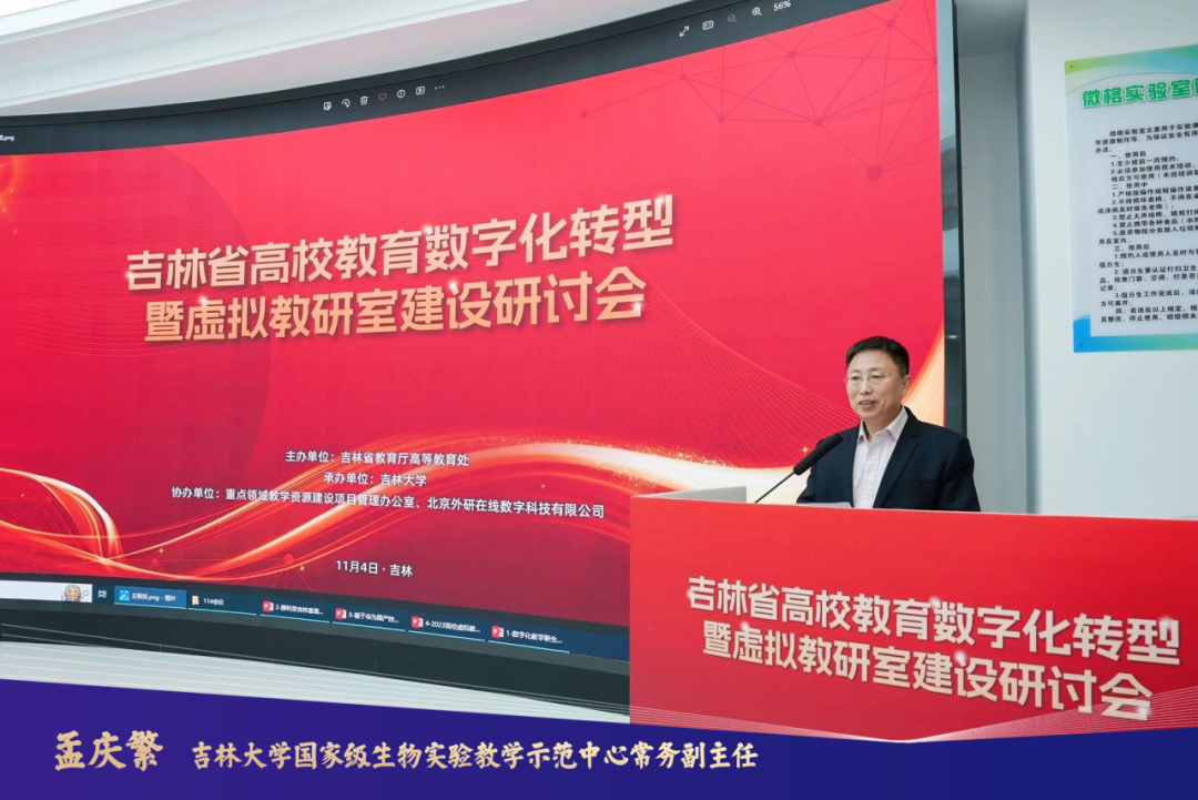 11月4日,由吉林省教育厅高等教育处主办,吉林大学承办,重点领域教学资源建设项目管理办公室、北京外研在线数字科技有限公司(以下简称“外研在线”)协办的吉林省高校教育数字化转型暨虚拟教研室建设研讨会在生物分中心隆重举行。