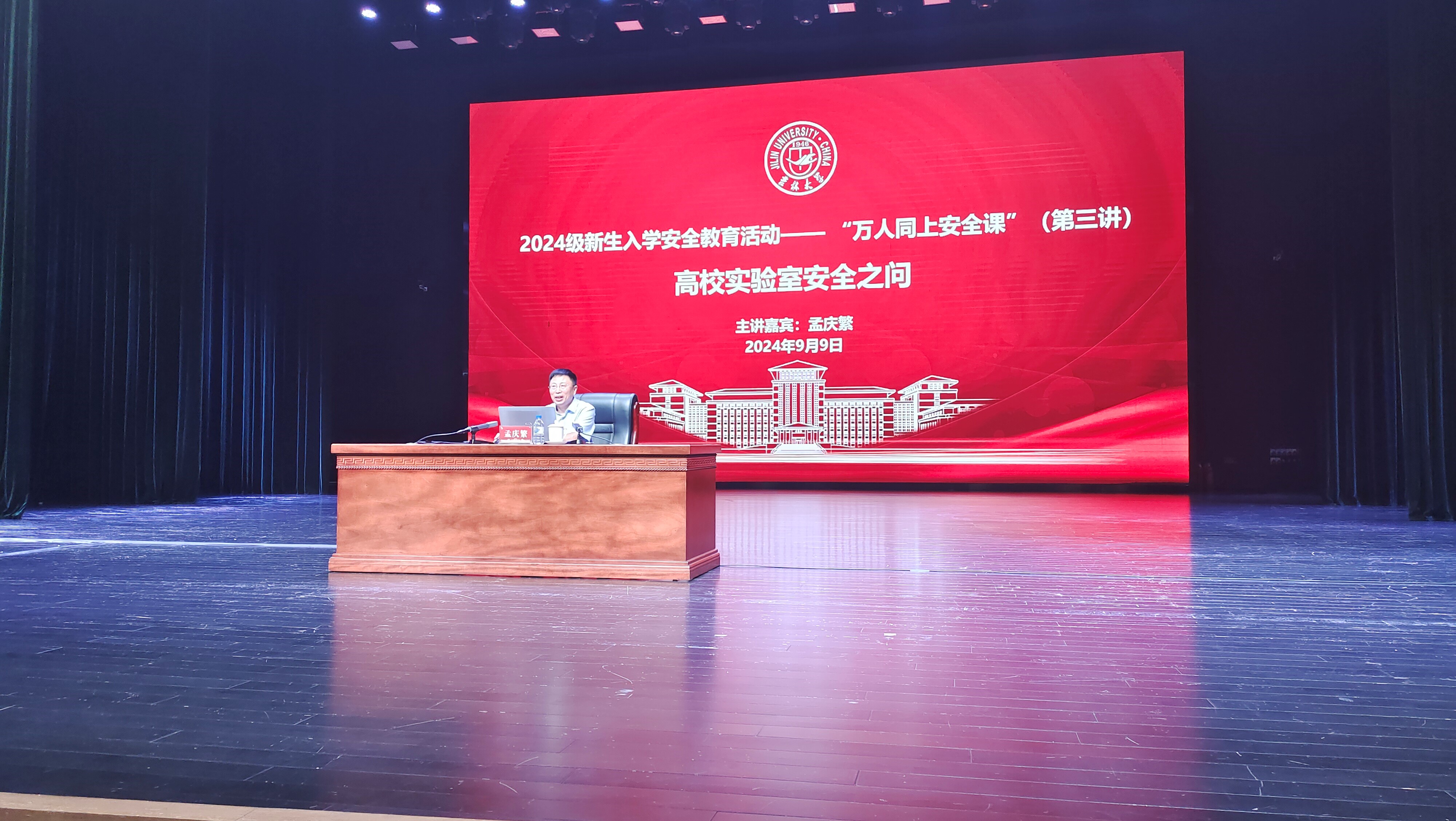 为全面贯彻落实总体国家安全观,提高学生安全意识,帮助新生系好入校后“第一粒安全纽扣”,打造安全、稳定、健康、和谐的校园环境,2024年9月9日,学校开展2024级新生“万人同上安全课”活动(第三讲),并通过线下“中心校区鼎新大讲堂”和线上“抖音、快手视频平台及微信视频号”有1.2万多人同时参加此次安全课。
